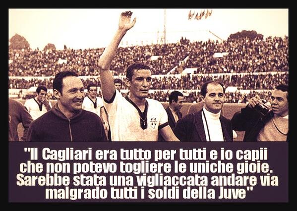 Un solo esempio quando decidevano le società un solo giocatore si è comportato da “UOMO VERO” in poche parole ha avute “le palle” di dire «Grazie no, voglio restare a Cagliari. Per sempre». GIGI RIVA