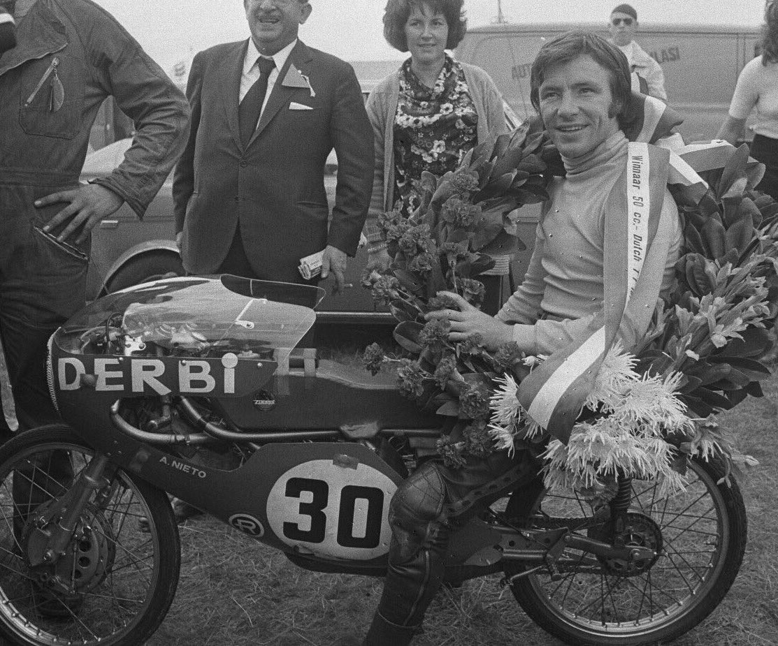 Angel Nieto, nella storia del Motomondiale sarà per sempre ricordato per il gran numero di titoli vinti: ben 13, anzi “12+1” come amava dire scaramantico, secondo solo a Giacomo Agostini, al momento inarrivabile dall’alto dei suoi 15 allori iridati. Angel Nieto Roldan, era nato a Zamora, il 25 gennaio del 1947 ed è stato sempre considerato il re delle piccole cilindrate (50 e 125, ndr) mentre nello stesso periodo il grande Mino trionfava tra 350 e 500.