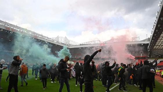 La protesta è cominciata con circa 200 tifosi fuori dallo stadio che contestavano la proprietà dei Glazer, coinvolta nel caso Superlega. Ma presto si è trasformata in una vera e propria invasione di campo, da parte dei tifosi della squadra di casa, che contestano la proprietà americana. In una nota la Premier League spiega che quella di rinviare la partita è «una decisione collettiva presa dalla polizia, dai club, dalla Premier League e dalle autorità locali. La sicurezza di tutti a Old Trafford rimane la priorità». La clamorosa protesta dei 200 supporter è andata in scena un’ora e mezza prima della partita. I fan sono scesi in campo e hanno acceso fumogeni e intonato cori contro la società. I tifosi sono riusciti a eludere la sorveglianza davanti alla curva che ospita un mega-store. Molti di loro indossavano le sciarpe gialloverdi ispirate ai colori della prima maglia dello United, quando si chiamava Newton Heath.