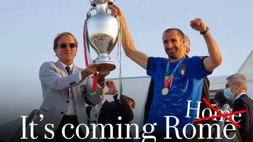 L’aereo sul quale ha viaggiato la nazionale italiana di calcio è atterrato poco fa all’aeroporto di Fiumicino. Ad attendere gli Azzurri, tornati da Wembley dopo aver vinto l’europeo ai calci di rigore contro l’Inghilterra, moltissimi tifosi. Sono tra 150 e 200, i tifosi che hanno atteso all’aeroporto di Fiumicino, dell’arrivo degli Azzurri, campioni d’Europa per la seconda volta nella storia e a distanza di 53 anni dalla vittoria con la Jugoslavia. La maggior parte sono ragazzi con tricolori al seguito che intonano canzoni come: “I campioni dell’Europa siamo noi” e “Po po po po“. La nazionale di Mancini è atterrata da pochi minuti.