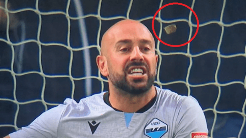 Al primo minuto di recupero di Atalanta-Lazio, il portiere della squadra ospite, Pepe Reina, sta per rilanciare il pallone mentre viene bersagliato dal lancio di oggetti da parte della curva atalantina. Come testimoniano le immagine di Dazn, Reina ne raccoglie uno (un grosso rotolo di nastro adesivo) ma l’arbitro Guida lo ammonisce, in maniera surreale, per perdita di tempo. Mentre il gioco è ancora fermo, il calciatore spagnolo viene centrato in testa da una monetina. Cade a terra, poi si rialza e va al rinvio del pallone, non senza aver detto tra le labbra cosa pensa di chi lo ha colpito. Il labiale è chiarissimo: “m….“.