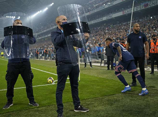 Il «Clasico» francese Olympique de Marseille contro Paris Saint-Germain, domenica sera, è stato turbato da gravi incidenti fuori e dentro lo stadio. In particolareNeymar, il campione brasiliano del Psg, è stato preso di mirapresso la bandierina del calcio d’angolo. Un gruppo di tifosi marsigliesi gli ha tirato addosso di tutto, bottiglie, accendini, caricatori per telefonino, mentre il giocatore veniva protetto dalle forze dell’ordine con scudi trasparenti, oltre alle reti di protezione.