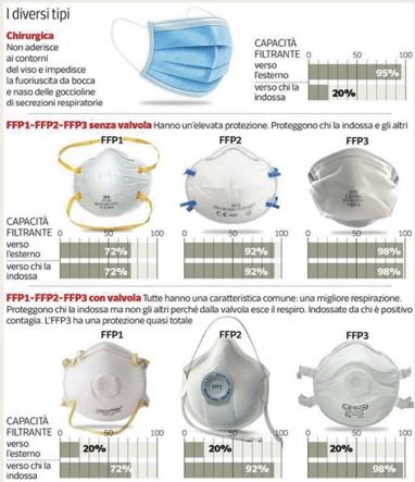 Le mascherine FFP2 e FFP3 – In ordine di potere filtrante abbiamo prima, per efficenza, le mascherineindicate ai medici o a persone a stretto contatto con malati Covid-19: «Semimaschere filtranti FFP2 e FFP3».