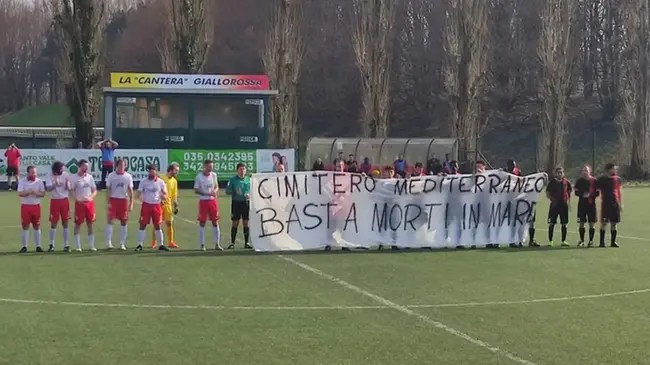 La mano pesante del giudice sportivo questa volta non tocca dirigenti maleducati o calciatori violenti. No. Lo schiaffo colpisce i buoni propositi e la sensibilità di una società della terza categoria bergamasca, laddove il calcio è solo passione, che va al di là del risultato. Ma proprio i buoni sentimenti come la solidarietà sono finiti nel mirino dei burocrati del pallone: e così l’Athletic Brighéla, che nell’ultimo weekend aveva portato in campo tramite i suoi calciatori un messaggio di solidarietà dopo la tragedia davanti alle coste calabresi, ha pagato a caro prezzo il suo gesto. E sì, perché l’arbitro non aveva dato l’ok.