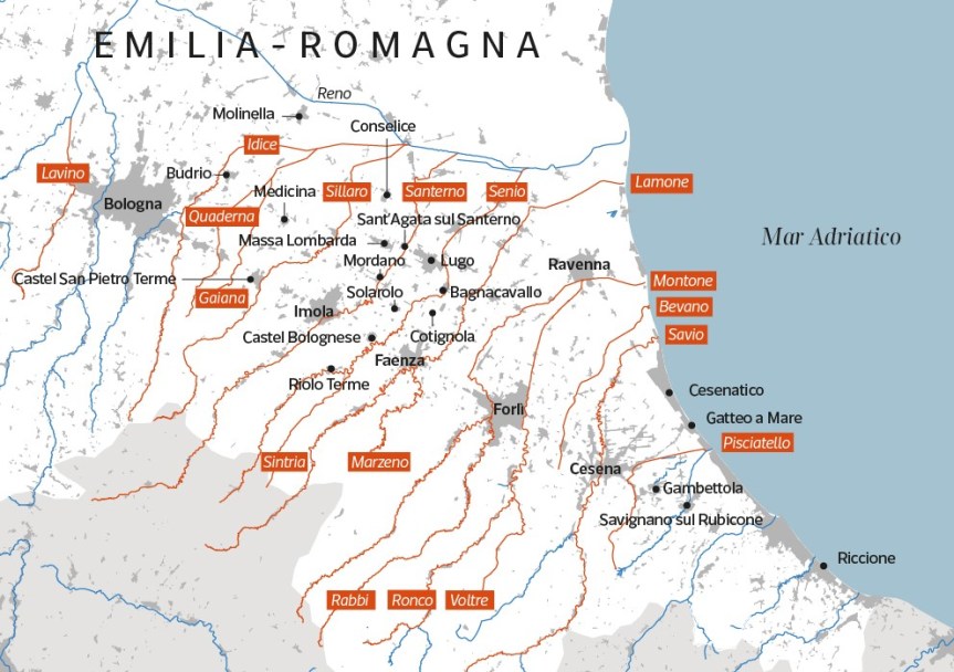 Le aree più interessate dall’emergenza meteo – Dunque è allerta rossa per criticità idrauliche e idrogeologiche su montagna e collina emiliana centrale; pianura modenese; pianura, collina e montagna bolognese; pianura, collina, montagna e Costa romagnola. Allerta arancione per: montagna e collina piacentina e parmense; pianura reggiana; pianura e Costa ferrarese. Le previsioni parlano di cumuli di pioggia fino a 100 millimetri sui rilievi romagnoli, ma saranno interessati anche l’Appennino nella fascia collinare nella zona bolognese, forlivese-cesenate, ravennate e modenese, con valori tra i 60 e i 70 millimetri d’acqua in media areale. Oltre a quello reggiano con quantitativi inferiori. Rispetto ai fiumi, sui bacini Romagnoli e affluenti di Reno sono attesi colmi di piena vicini ai franchi arginali e ai massimi storici registrati. Livelli prossimi alla soglia 3 sono attesi anche su altri fiumi nella pianura modenese