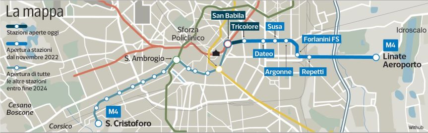 Aprono oggi le fermate San Babila e Tricolore della M4 (linea Blu): in 12 minuti si viaggia dal centro di Milano all’aeroporto di Linate