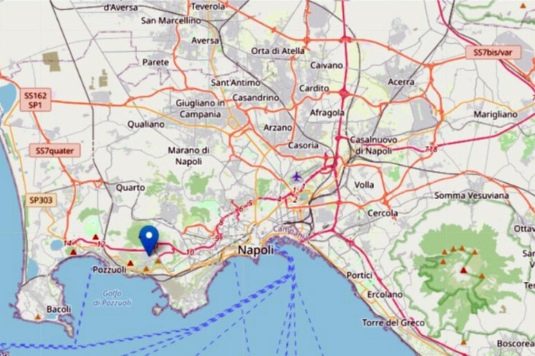 Sciame sismico nella notte nel Napoletano con epicentro i Campi Flegrei.