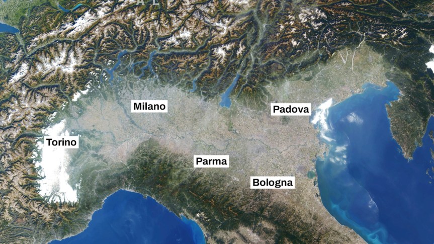 Che sia la Pianura Padana sia una delle zone più inquinate d’Europa è risaputo. Ma vederlo in fotografia dallo spazio è impressionante. Ma negli ultimi giorni il livello di smog è stato impressionante. Mercoledì Milano è risultata avere il livello quotidiano di polveri sottili più alto del mondo, peggio di Pechino, Shanghai e New Delhi. Lo smog di quel giorno è stato immortalato dal satellite europeo Copernicus in un’immagine satellitare in cui è chiaramente unvelo di foschia che si estende dal Piemonteal Mar Adriatico.