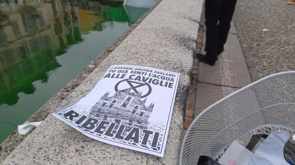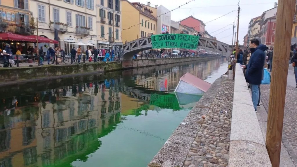 L’avevano annunciato nei giorni scorsi nelle loro chat, senza dare dettagli ma parlando di un’azione di protesta clamorosa. E infatti nel primo pomeriggio, a Milano in contemporanea con Venezia, Roma, Torino e Bologna, le acque dei fiumi e dei canali si sono tinte di verde fosforescente. Gli autori di questa azione provocatoria sono gli ambientalisti del gruppo Extinction Rebellion, che da mesi hanno deciso di manifestare in questo modo la loro preoccupazione per le sorti del pianeta.