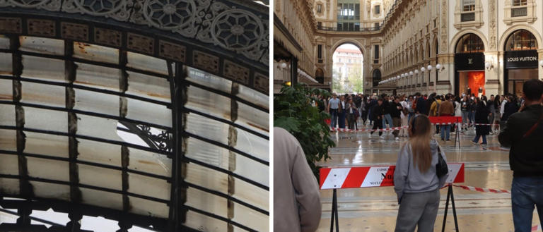 Una parte della copertura è caduta davanti al ristorante Cracco, dove passano ogni giorno migliaia di persone. L’area è stata transennata e messa in sicurezza