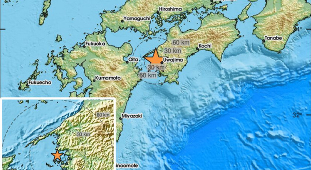 Una scossa di terremoto di magnitudo 6.3 ha colpito il Giappone alle 16.14 (23.14 locali). Il sisma è stato localizzato al largo della regione-isola di Shikoku, nel Canale di Bungo, nel sud-ovest del Paese. Lo riferisce l’istituto geologico americano Usgs. La scossa è stata avvertita in un’ampia fascia del Giappone occidentale. Non è stata diramata alcuna allerta tsunami. Al momento non si ci sono segnalazioni di particolari danni a persone o cose.