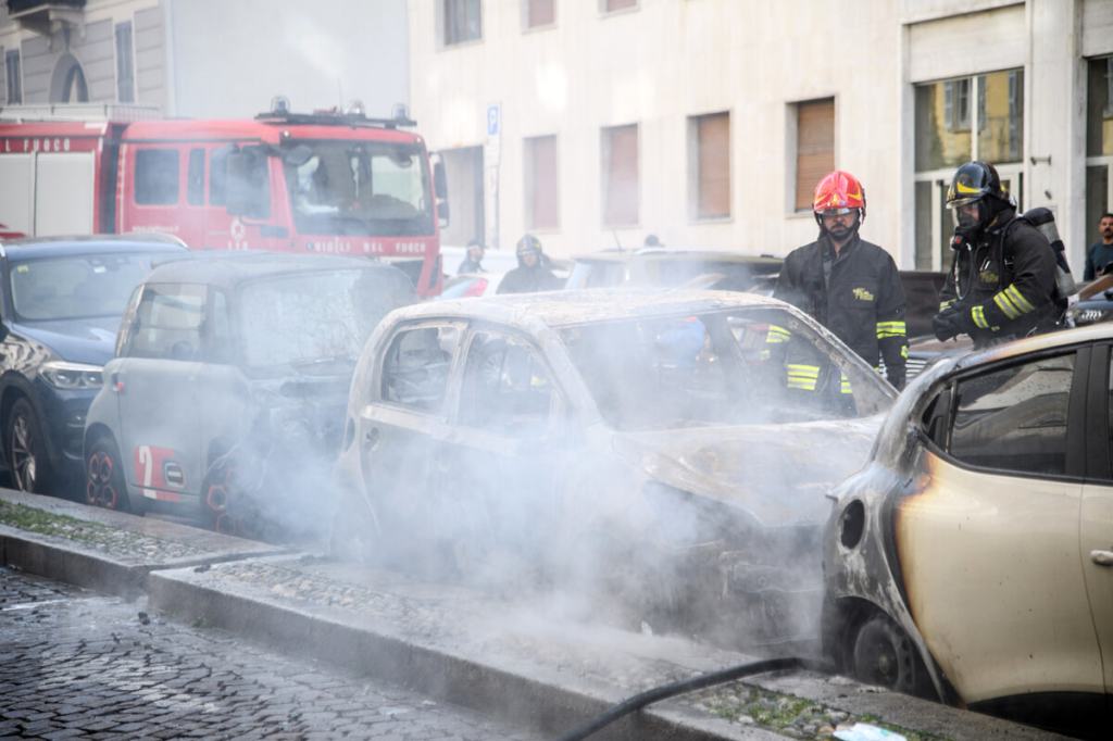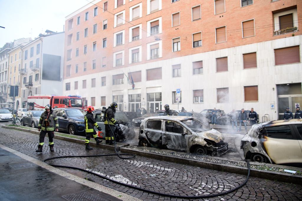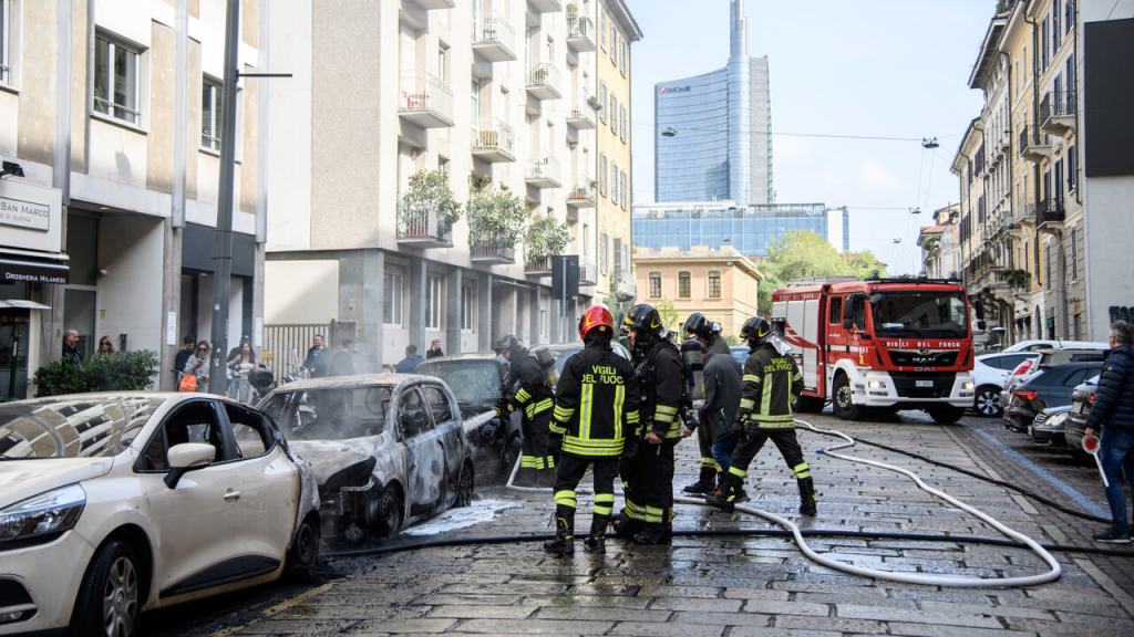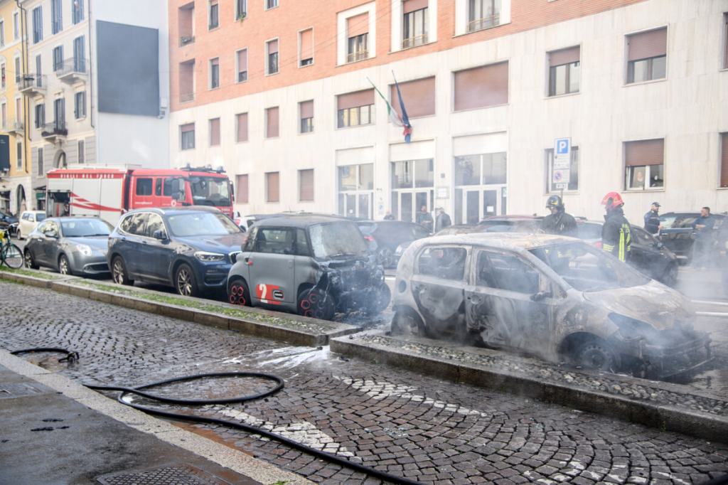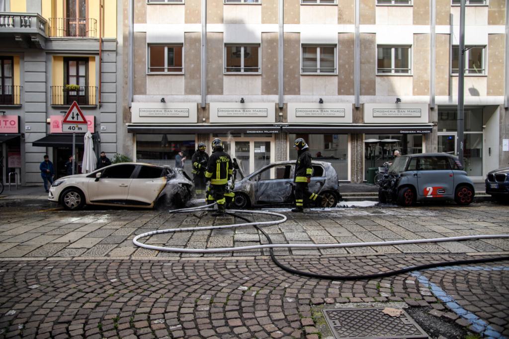 È successo in via San Marco a Milano nella mattinata di venerdì 5 aprile. Il rogo è partito da una Volkswagen Up e si è esteso a una Clio e ad una Ami