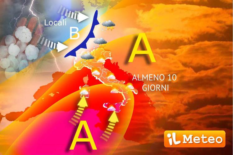 Mercoledì 10.Al Nord: qualche temporale sui confini alpini, sole e caldo afoso altrove. Al Centro: sole e molto caldo. Al Sud: ampio soleggiamento e caldo africano.