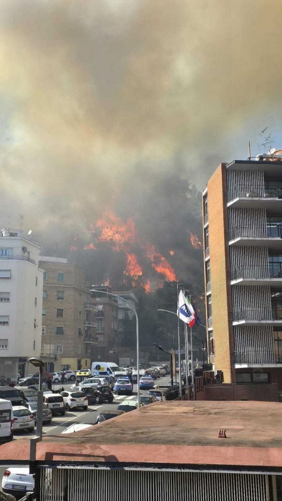 Incendio Monte Mario: sede Rai sgomberata – Le fiamme, che vede impegnati pompieri e Protezione Civile, sono divampate presumibilmente da un’area di parcheggio per poi espandersi sulla collina dell’Osservatorio, anch’esso sgomberato. Terrore tra i residenti. I dipendenti Rai e i conduttori, che in quelle ore stavano girando alcune trasmissioni televisive in diretta, sono stati fatti uscire per precauzione.