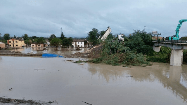 Il Lamone rompe gli argini – Nella notte tra 3 e 4 ottobre il fiume Lamone ha aperto una falla a Traversara, frazione di Bagnacavallo tra quelle evacuate, nello stesso punto della rotta del 19 settembre quando il paese era stato completamente allagato. (L’articolo di RavennaToday) L’acqua ha invaso i campi.