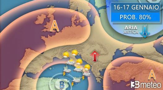 Ancora maltempo sull’Italia: dopo la neve torna la pioggia. Un vortice di bassa pressione, attualmente sullo Ionio, sarà – secondo 3BMeteo – il protagonista del tempo sull’area mediterranea per tutta la settimana, fino al weekend e probabilmente anche oltre. Un grosso anticiclone sull’Europa centro occidentale continuerà a favorire la discesa di impulsi freddi di matrice artica dalla Russia verso l’Italia. Un secondo impulso è atteso mercoledì 15 gennaio: sarà meno freddo dei precedenti ma avrà una spinta tale da andare a rinvigorire tutta la circolazione ciclonica che si sposterà più verso ovest e metterà a rischio forte maltempo le regioni meridionali.