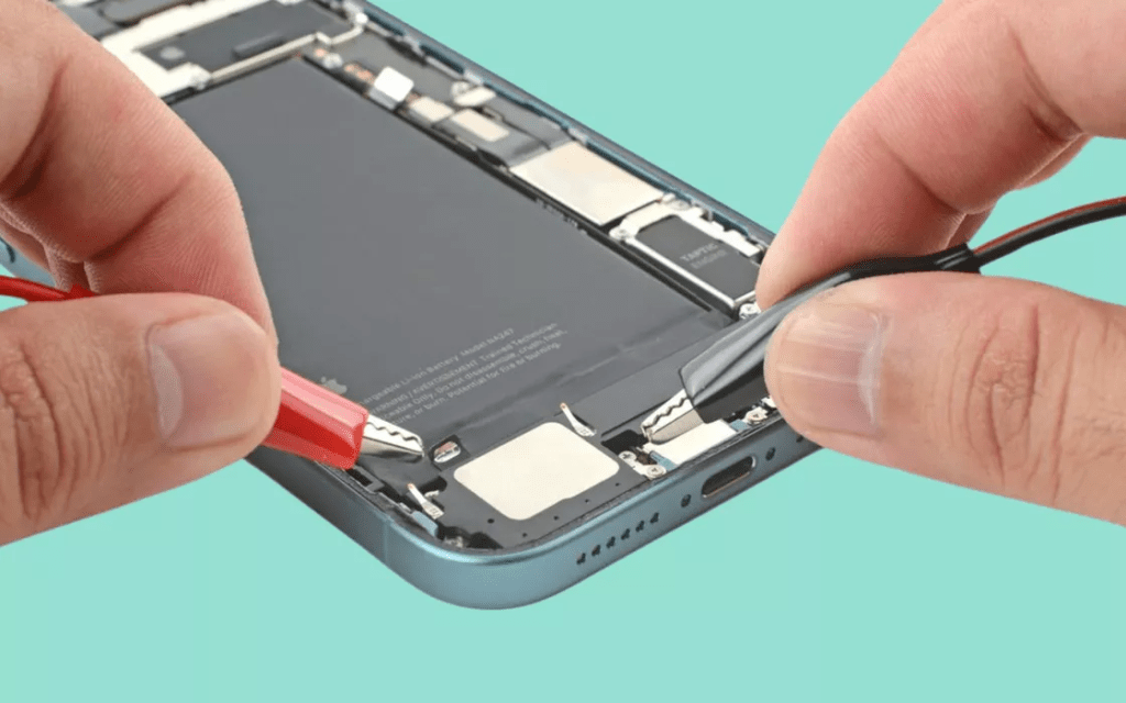 La batteria di iPhone 16 si cambia subito: ecco come – La clip rossa positiva va alla linguetta argentata della batteria dell’iPhone 16 e quella nera alla vite di messa a terra in basso a destra che tiene a sua volta fermo l’altoparlante. In 90 secondi o meno, la batteria può essere dunque semplicemente rimossa di modelli iPhone 16 e 16 Plus. È per questo motivo che iFixit ha attribuito un punteggio di riparabilità pari a 7/10.