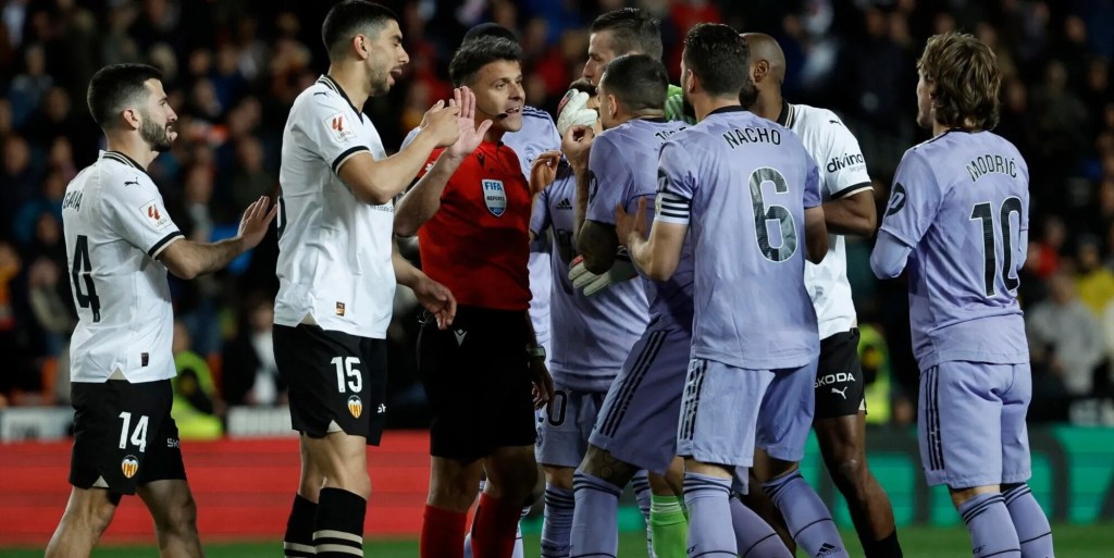 Il Real Madrid segna il gol della vittoria, ma l’arbitro ha già fischiato la fine: caos a ValenciaClamoroso a Valencia: 3-2 Real ma l’arbitro fischia la fine…sul cross del gol!