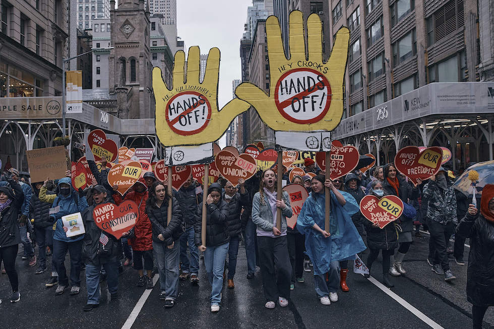 Da Washington DC a Los Angeles passando per gli stati del Sud, manifestazioni contro lo «smantellamento» delle istituzioni voluto da The Donald e i suoi alleati miliardari