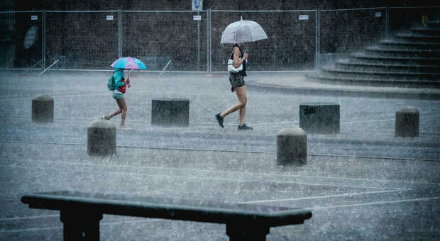 Il temporale di mercoledì pomeriggio in piazza Duomo(foto Paolo Salmoirago)