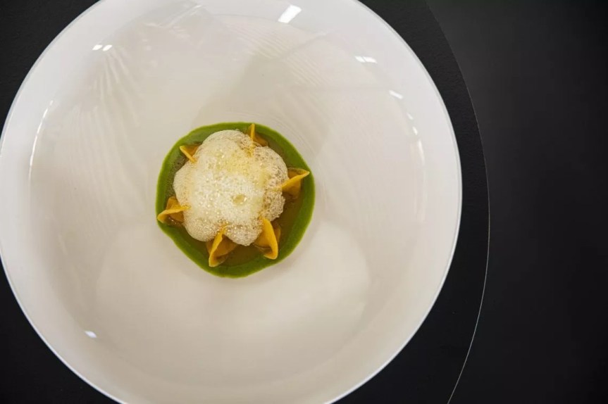 Lo stesso che si riflette nella cucina e nei pensieri di quel ragazzo che a 29 anni aveva ricevuto la sua prima stella: «Dopo il lockdown credo in una cucina concreta, vera. La sostenibilità dobbiamo farla, non dirla». Un credo che è stato applicato a Rovigno così come a Godia, «era già dentro di me come pensiero ma non ero così integralista. Fin quando è venuto da me Silvano, un agricoltore che produce asparagi, dicendomi che lui lavorava tutto l’anno per coltivarli per noi ristoratori. “Quest’anno non potete usarli, almeno assaggiali” e lì ho capito a fondo l’importanza di creare piccole economie locali per non perdere i coltivatori e gli allevatori, che sono i veri custodi delle biodiversità».