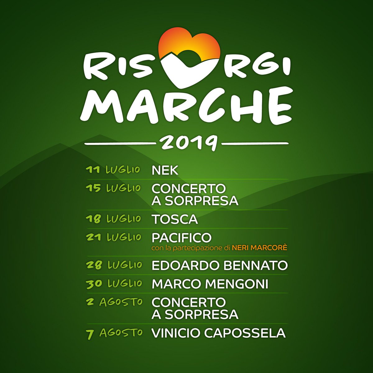 Il cantante si è esibito gratuitamente nei pressi di Matelica per chiudere la manifestazione ideata da Neri Marcorè a favore delle popolazioni terremotate